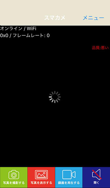この画面が出ること自体は別に悪いことではなく、準備中なんだなーっていうのはわかるんですが・・・時々、この画面のまま全く動かずカメラに接続できないことがあります。