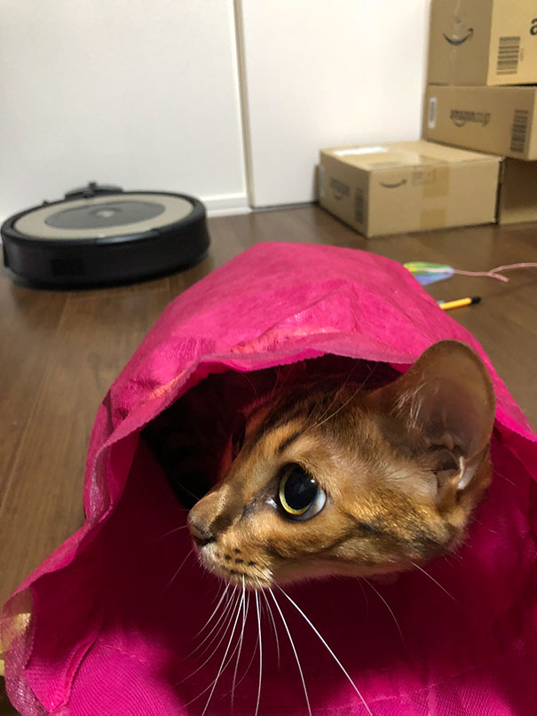 比較対象がいなくて全ての猫がそうなのかわからないですが、ジルは異様にAmazonのギフトに使われるラッピング袋が大好きです。