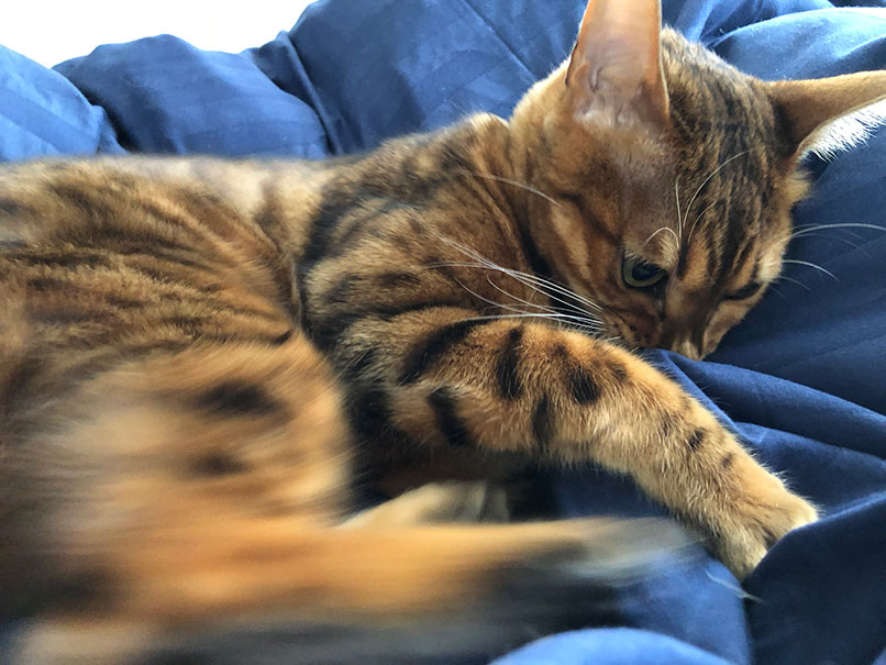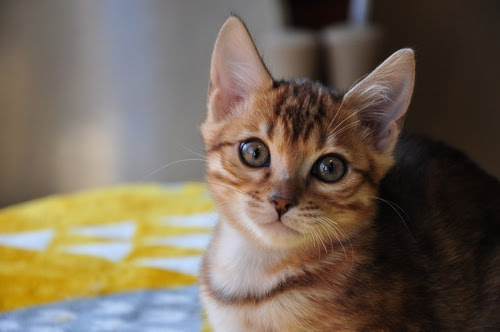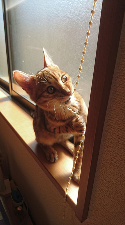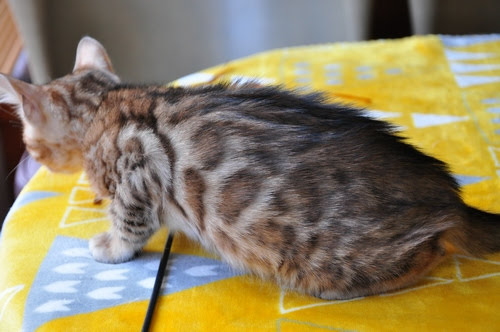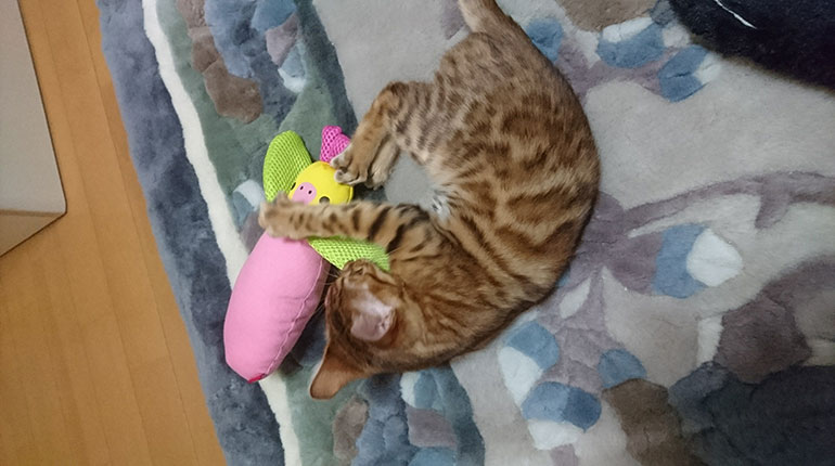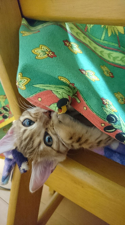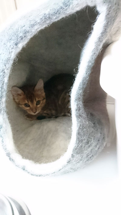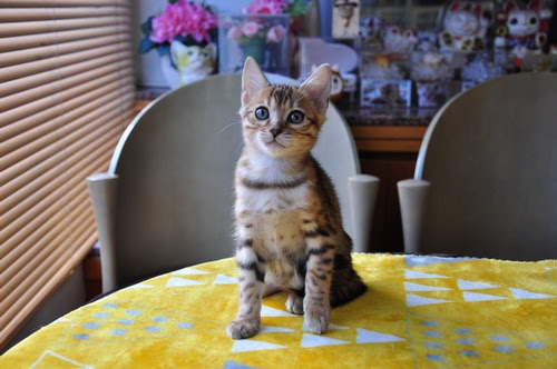 本当はスノーベンガルという白いベンガルを飼いたいなと思ってたんですが、このおめめぱちくりちゃんの前には何もかもが無力。まじで運命の出会いでした。