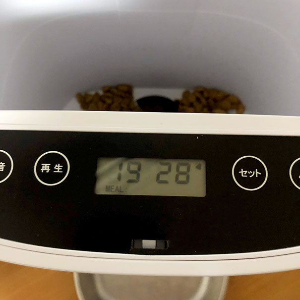 我が家は基本朝のみ、昼・夜は長時間のお出かけのときだけなので、ちょこちょこ給餌設定を変えていました。なので、リモコンを繋がないと何もできない、ポーション0でも音声が再生される(一旦設定をリセットしないといけない)という点で合いませんでした。