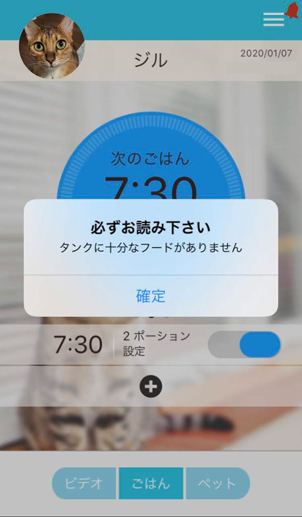 → カリカリマシーンはポーション0のときは再生されません。給餌なしなのに音声だけが再生されて、猫たちが勘違いしました - フード切れお知らせは本当にフードが切れないとわからない