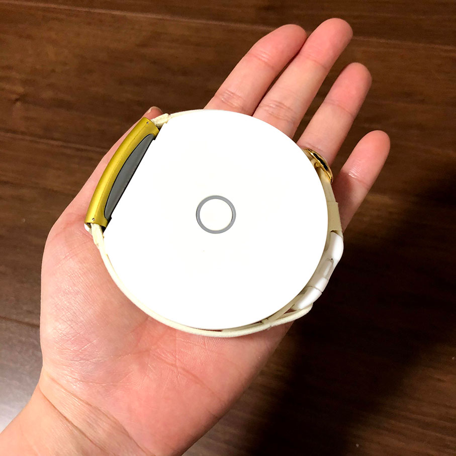 Homeはもうちょっと大きいのかなと思ってましたが手のひらサイズでコンパクトです。Mサイズの首輪がわりとぴったりめくらい。