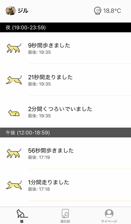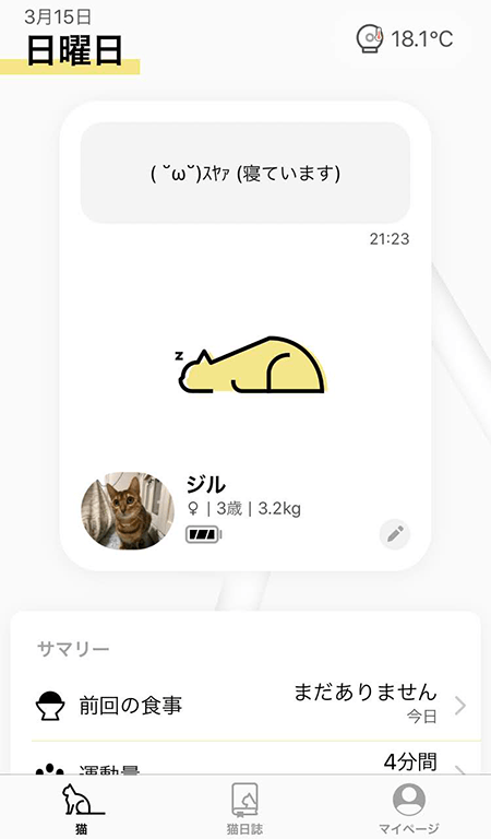 我が家は私も夫もフルリモートなので家にいることが多いのですが、猫たちが別の部屋でくつろいでいることもあるので、アプリをちょっと立ち上げて何してるのか見たりします。近くにいても見ます。何度も見るのが苦にならないというか、見たくなるUIはすばらしいと思います。(寝ています、とかかわいい)